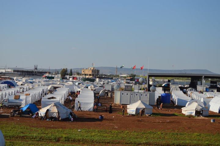 ما أن ينتهي الممر، الذي بات يفصل ويربط بين عالمين، حتى تجد نفسك وسط متناقضات الوضع السوري الحالي، في البداية يستقبلك علم الثورة واللافتات التي ترحب بك في سوريا الجديدة، والتي تنثر أجواء من التفاؤل، ثم عندما تتقدم بضع خطوات أخرى وتصبح داخل مخيم إعزاز، يقابلك الوجه المأساوي للأزمة.