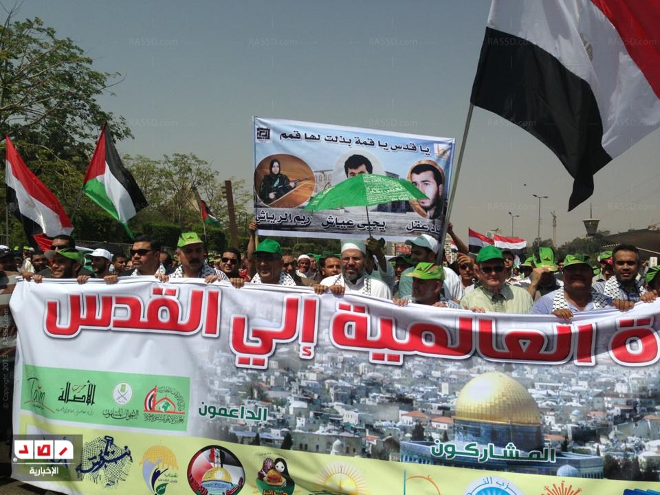 أتي ذلك بعد أنتهاء خطبة الجمعة التي ألقاها الدكتور صلاح سلطان في مسجد رابعة العدوية بحضور رئيس مجلس الوزراء الدكتور هشام قنديل ، وأنطلقت بعدها مسيرة بعنوان" القدس لنا" للمشاركة في المسيرة العالمية نحو القدس وأتجهت للنصب التذكاري للجندي المجهول بمشاركة وزير الثقافة و وزير الرياضة العامري فاروق، وعبد الرحمن البر، عضو مكتب إرشاد جماعة الإخوان المسلمين وعميد كلية أصول الدين، والمئات من المتظاهرين .