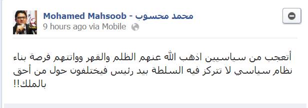 محسوب : أتعجب من سياسيين يختلفون على من أحق بالملك