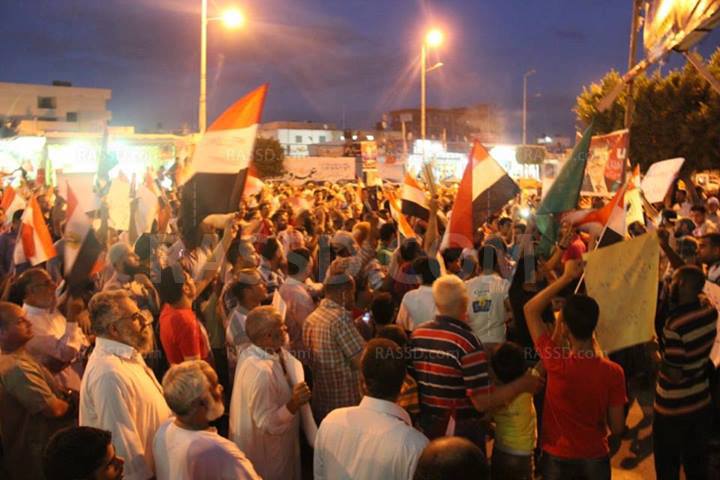 توافد المئات من القوى السياسية والإسلامية والوطنية ورموز قبائل سيناء وجماهيرها أمام مسجد أبو بكر الصديق بالفواخيرية بمدينة العريش داعمين لشرعية الرئيس تحت عنوان لا للعنف و نعم للشرعية .. ومؤكدين على سلمية تظاهراتهم وأرسلوا رسالة إلى رئاسة الجمهورية مفادها "أن سيناء ببدوها وحضرها .. ونسائها ورجالها مع شرعية النظام ومع إرادة شعب مصر العظيم"