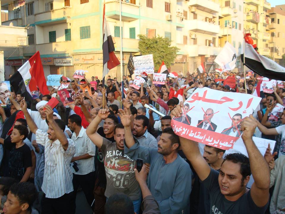وردد المتظاهرون هتافات "يسقط يسقط حكم المرشد"، و" الشعب يريد اسقاط النظام" و"انزل متخفشي مرسي لازم يمشي"