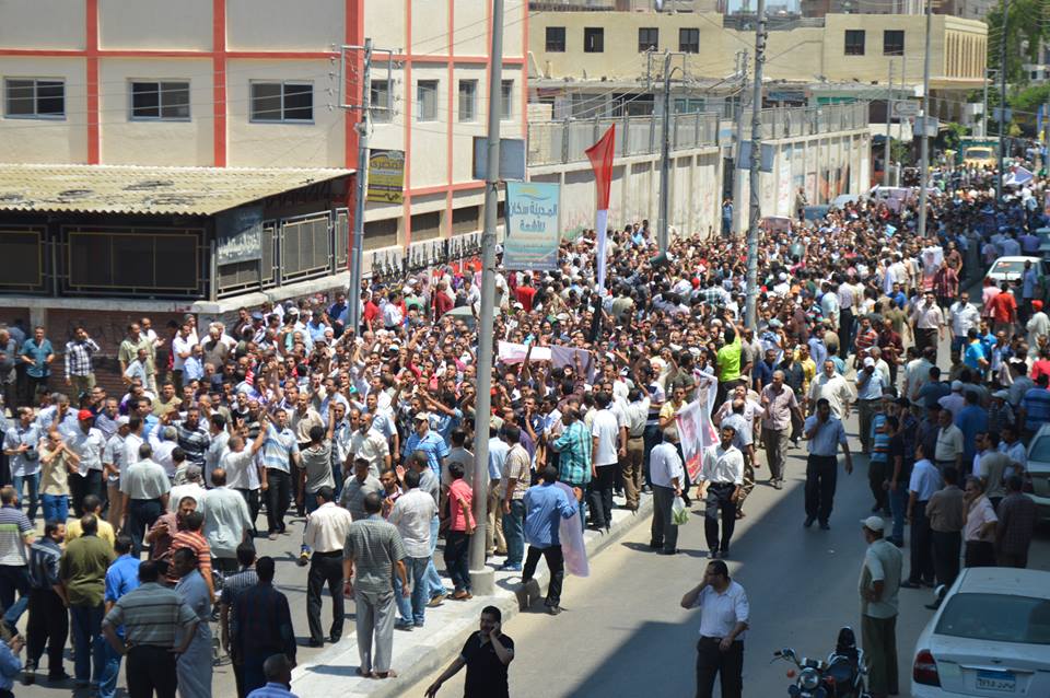 وفي المنصورة توافد الآلاف من مؤيدى شرعية الرئيس محمد فى مسيرة حاشدة عقب صلاة الجمعة بمسجد أعضاء هيئة التدريس وسط هتاف "بالطول بالعرض هنجيب السيسي الأرض"