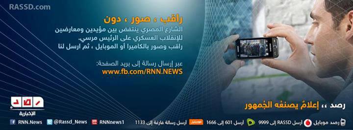 في إنجاز جديد تحققه شبكة رصد الإعلامية وبعدما قدمت من تغطية إعلامية مميزة أثناء ثورة 25 يناير 2011 على نظام السجين حسني مبارك، وما قام به من طغيان وفساد في الشعب ، و بعد أن تميزت رصد وأصبحت هي الصوت الأبرز والأقوى في تلك الفترة في تغطيتها وبثها للأخبار، تتفوق رصد مجدداً على نفسها وتثبت أن الكثير من الإعلام الخاص و الحكومي لا يمكنه إلا أن يظل حبيس مالكي أسهمه المالية والنظام السياسي الحاكم .