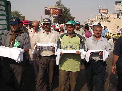 كما انطلقت منذ قليل مسيرة من ميدان رابعة العداوية بالأكفان تطوف أرجاء مدينة نصر، ذلك في الوقت التى جهزت فيه نعوش شهداء مجزرة الفجر أمام مسجد رابعة العداوية للاستعداد للدفن.