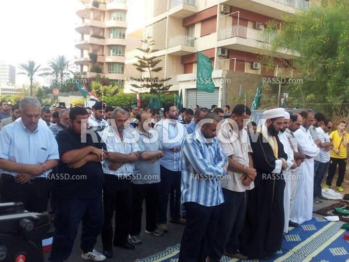 احتشد اليوم (الجمعة) المئات من أفراد الجماعة الإسلامية أمام السفارة المصرية ببيروت تنديدا بالانقلاب العسكري بمصر وتأييدا لشرعية الرئيس المنتخب محمد مرسي .