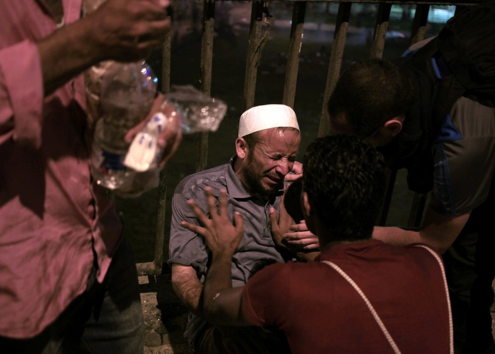 أحد المصابين بالاختناق إثر إطلاق قوات الأمن قنابل الغاز المسيلة للدموع على المتظاهرين المعارضين للانقلاب العسكري في ‫‏رمسيس
