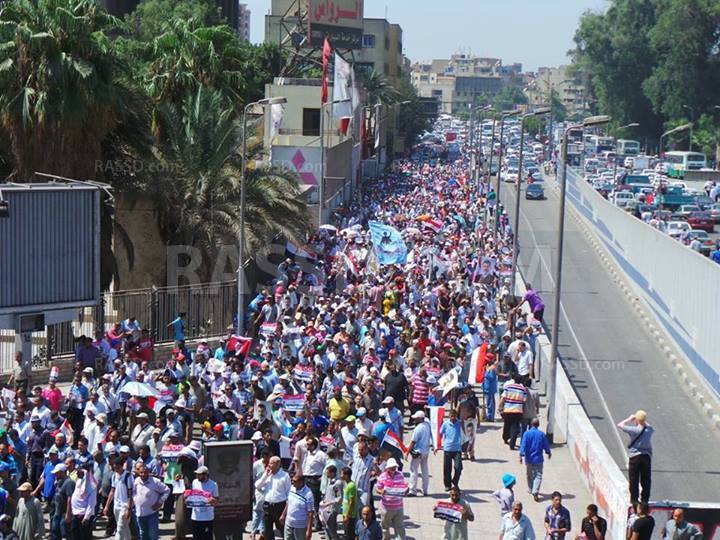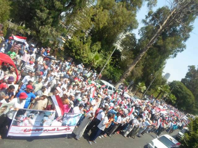 وعلى الجانب الآخر، وصلت منذ قليل مسيرة حاشدة منطلقة من الكيت كات إلي ميدان سفينكس، معلنة رفضها للانقلاب العسكري.