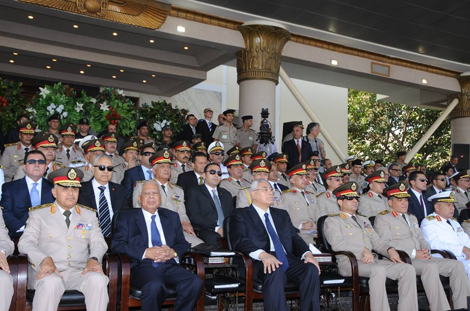 الرئيس المؤقت المستشار عدلى منصور خلال احتفال الكلية الحربية