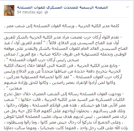 نص البيان على صفحة المتحدث العسكري