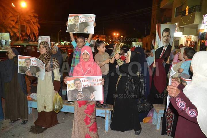 وكان عدد من رافضي الانقلاب العسكري ومؤيدي الرئيس محمد مرسي، قد تظاهروا عقب الانتهاء من صلاة التراويح، مساء امس ، في ساحة مسجد المجمع الاسلامى الكبير بميدان الشعله في مدينة الخارجه.