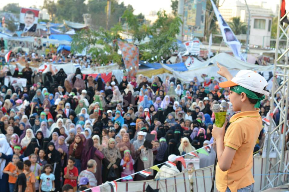 ووراء كل صامد في الميدان صامدة بأولادها هذا هو حال المعتصمات في ميدان رابعة العدوية و ميادين الاعتصام فأغلب المعتصمات في ميدان رابعة يقضون نهار رمضان في المسيرات و الوقوف بجوار خيم الرجال، مرددين هتافات "ياللى نايم نايم ليه مرسي راجع و لا إيه "و يشاركون في تأمين الميدان ، فضلا عن المسيرات اليومية في القاهرة المحافظات التي يغلب عليها الطابع النسائي، متحملين حرارة الجو و العطش و الجوع من أجل إيمانهم بعدالة قضيتهم، فلولا صمود هؤلاء النساء ما صمد الرجال لثلاثين يوما مضت.