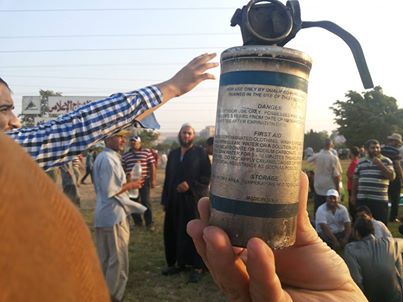 إحدى قنابل الغاز التى ألقتها قوات الامن على المتظاهرين امام مدينة الانتاج الاعلامى
