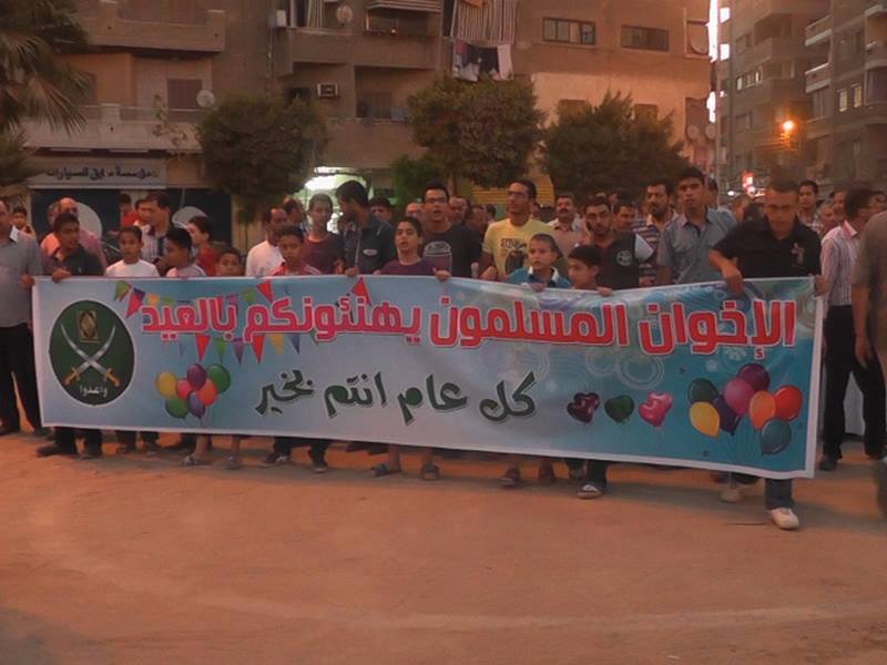 وانطلق في الحي نفسه مسيرة حاشدة من مسجد قباء طافت الأرجاء، والشوارع المحيطة بالمسجد حتى انتهت بمصلي مديرية الأوقاف بإستاد منهور الرياضي، وردد المشاركين في المسيرة تكبيرات العيد، رافعين لافتات التهنئة باسم جماعة الإخوان المسلمين ولاقت المسيرة تفاعلا كبيرا من الاهالى .