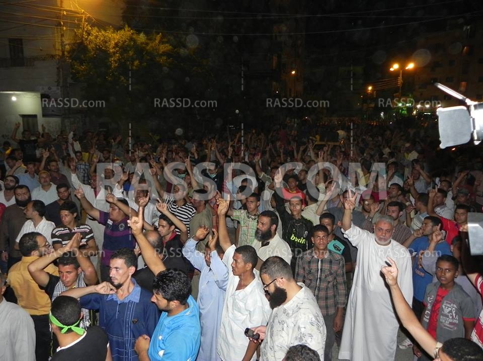 كانت قد خرجت مسيرة غاضبة من أمام مسجد الشبان المسلمين عقب صلاة العشاء , وجابت أحياء وشوارع المحافظة إبتداءاً من حى البارودية ومروراً بأحياء " المنتزه , دار الرماد , فيلا المحافظ , الجامعة , والمشتل " وإنتهاءاً بحى الكيمان .