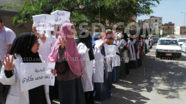 نظم ظهر اليوم الأحد كلا من " نقابة المهن الطبية بالفيوم " وأهالي المصابين، والمعتقليين الأطباء، وقفة إحتجاجية أمام مستشفي الفيوم العام ومديرية الصحة، للتنديد إعتقال الاطباء ونقيبهم الدكتور " حاتم النشار "، والمعاملة اللانسانية التي يلقونها.