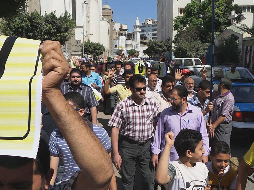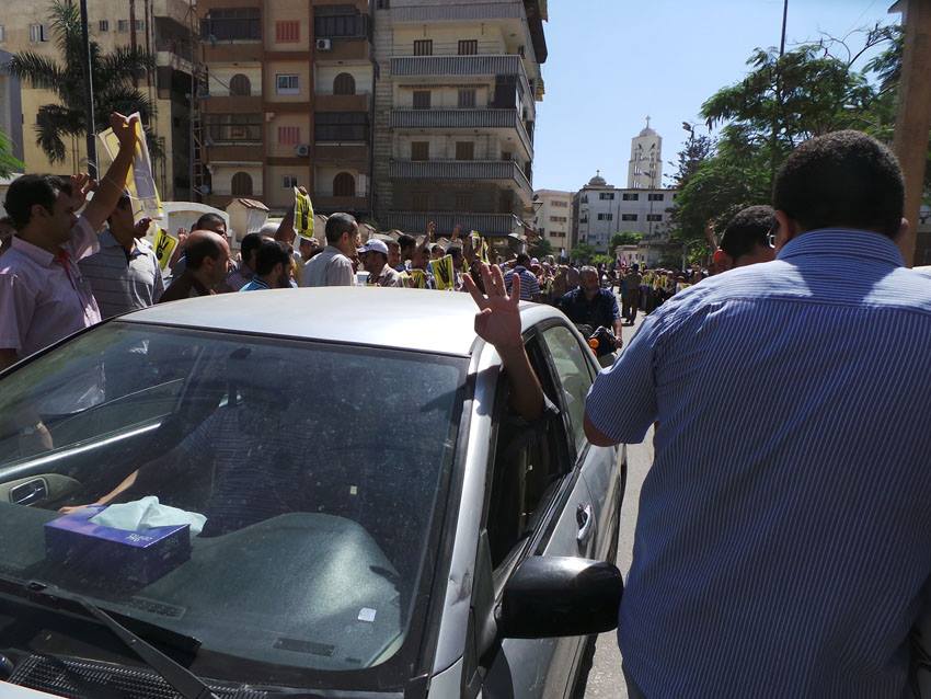 انطلقت المسيرة من أمام مديرية التربية والتعليم وانتهت بمنطقة المعلمين شارك فى المسيرة الالاف من ابناء مدينة دمياط هتفوا خلالها هتافات منددة بهذا الانقلاب ومنددة بالمجازر من هذه الهتافات"يا اللى بتسال ايه القصه …. قتلوا اخويا وحرقوا الجثه ،، ويسقط يسقط حكم العسكر".