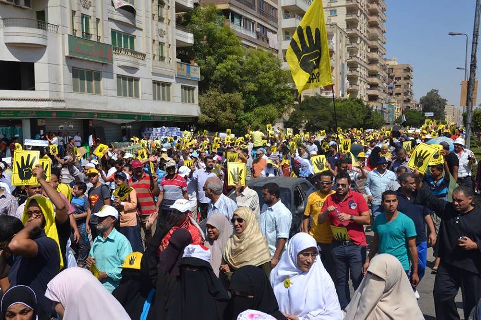 ورفع المشاركون صور الرئيس محمد مرسى واعلام واشارات رابعة العدوية وصور بعض الشهداء،مرددين الهتافات والاغانى الثورية، و هتافات مناهضة للفريق اول عبدالفتاح السيسى وزير الدفاع ومطالبة بمحاسبة المسئولين عن المجازر التى ارتكبت بحق رافضى الانقلاب .