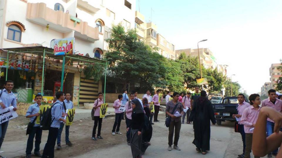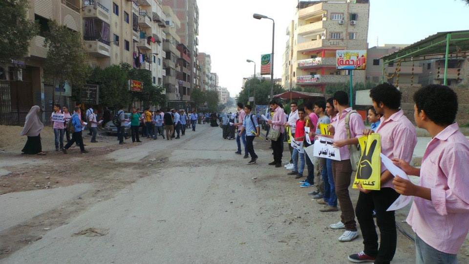 نظم العشرات من طلاب مدرسة حلوان الثانويه بنين صباح اليوم سلسله بشريه بجوار المدرسه بشارع زكى حواس لرفض الانقلاب العسكرى والمطالبه بالافراج عن اقاربهم وجيرانهم المعتقلين.
