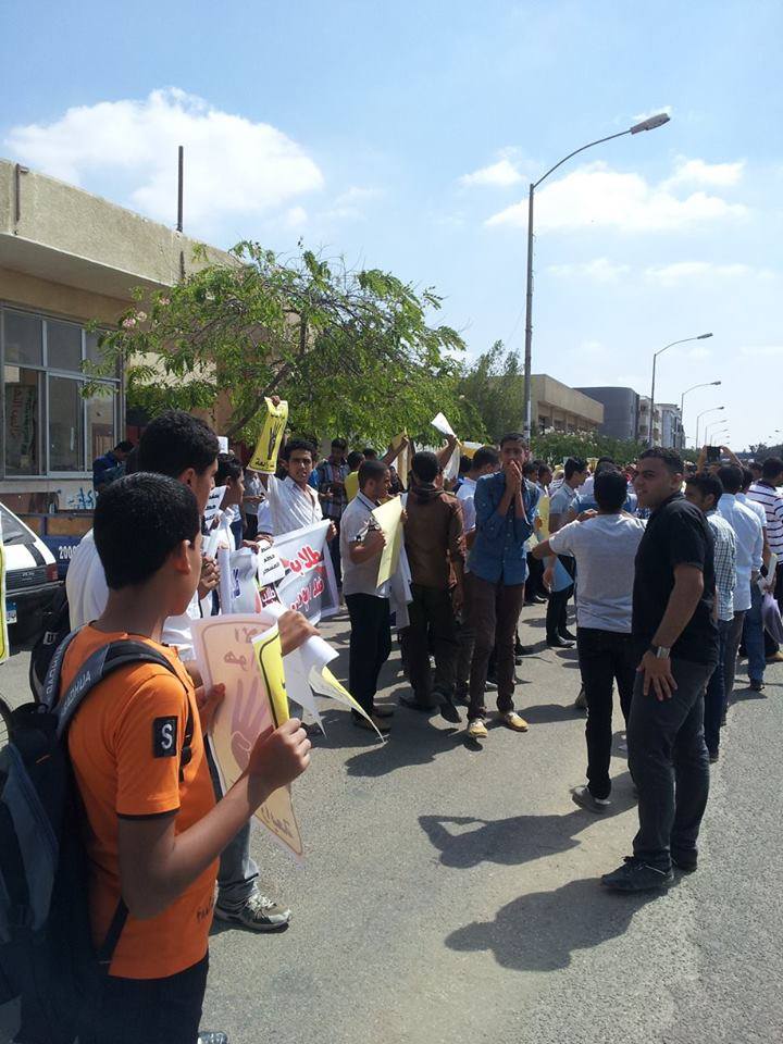 نظم طلاب ضد الانقلاب بجامعة السادات بالمنوفية منذ قليل وقفة أمام كلية التجارةللمطالبة بعودة الشرعية والإفراج عن زملائهم المعتقلين, كما ندد الطلاب بحكم العسكر والمطالبة بمحاكمة منفذي مجازر رابعة العدوية والمنصة والحرس الجمهوري. كما أعربوا عن استيائهم من تردي الأوضاع الاقتصادية.
