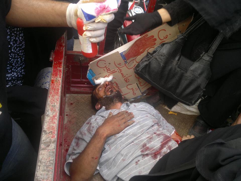 وفي الاسماعيلية كانت هناك اصابات عقب هجوم قوات الجيش والشرطه والبلطجيه على المتظاهرين منذ قليل بشارع التلاتينى.