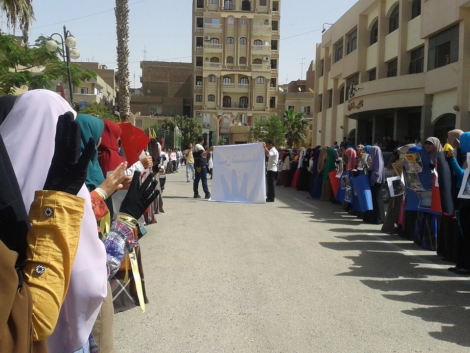 تجددت عقب ظهر اليوم الفعاليات المناهضة للحكم العسكري بجامعة الفيوم , حيث نظم طلاب الجامعة الرافضين للانقلاب العسكري , عدد من السلاسل البشرية أمام جميع الكليات ومسيرات طلابية جابت كليات وبوابات الجامعة , رفضاً للإنقلاب العسكري في مصر وتدخله في سياسات الجامعة , والتنديد بتخاذل إدارة الجامعة عن الوقوف مع المعتقلين الرافضين للانقلاب , مشيرين إلي أنه تم اعتقال طالب رابع من أبناء الجامعة , أول أمس الأحد أثناء مشاركتة في مسيرات الفيوم الرافضة للانقلاب التي خرجت في ذكري 6 اكتوبر وقامت قوات الجيش والشرطة بالاعتداء عليها واعتقال البعض منها.
