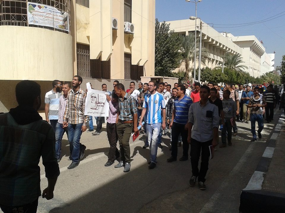 بدأت المسيرة بتنظيم طالبات كلية دار العلوم مسيرة طلابية داخل الكلية وتحركت بمسيرة حتي بوابة كلية الهندسة لتلتحم بالفعاليات الرئيسية التي شارك فيها طلاب جامعة الفيوم الرافضين للانقلاب العسكري , وبعد تنظيم الطلاب سلاسل طلابية أمام كلية الزراعة انطلقت مسيرة جابت باقي كليات الجامعة وبواباتها هاتفين : " يا ابو ضبورة ونسر وكاب .. غاوي لية حبس وقتل الشباب " , " اقتل واسجن وادبح فيا .. فكرك يعني مش هنثور .. مهما تقتل بردوا هقولها .. مجلس عار ورئيس طرطور " , " يا حرية فينك فينك .. حكم العسكر بينا وبينك " , " رابعة دي رمز الصمود .. عاشوا رجالة وماتوا اسود. " .