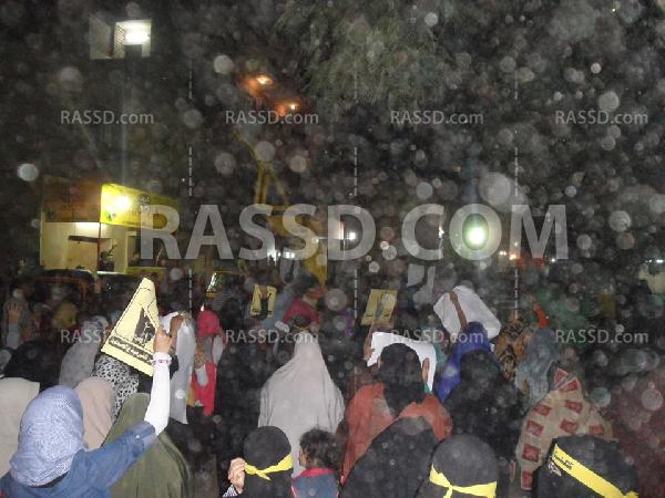وجابت المسيرة شوارع الحواميدية، رافعين علامة النصر رابعة، وصورة الرئيس محمد مرسي مدون أعلاها "نعم للشرعية الدستورية ززوالرئيس محمد مرسي"، ولافتة مدون عليها تاريخ اليوم.