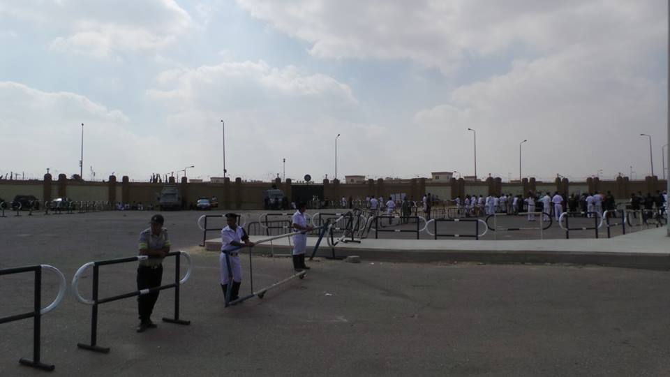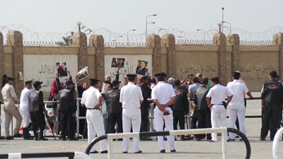 حيث نادي العشرات امام مبني الاكاديمية بوابه "8" بالقصاص من مبارك و العادلى و مساعديه و بحق شهداء يناير و الفصل في القضيه مرددون شعارات مثل الاعدام للمخلوع و يسقط يسقط حكم العسكر و علي الجانب الاخر وقع عدد من ابناء مبارك و حركه اسفين يا ريس يردون عليهم يرفعون صورة مبارك يهتفون لخروجة.