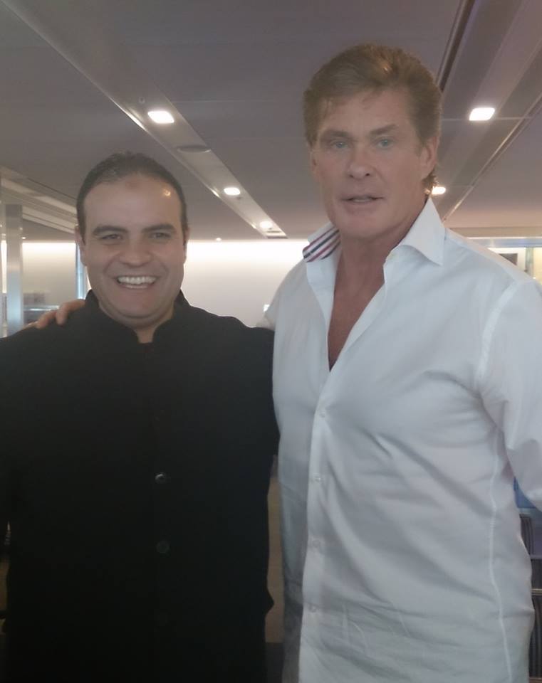 وقد التقط أول أمس صورة مع د. محمد البرادعي – النائب السابق للمستشار عدلي منصور المكلف من وزارة الدفاع بإدارة شؤون البلاد بعد الانقلاب – وهو في أحد مطاعمه رافعًا إشارة رابعة العدوية .