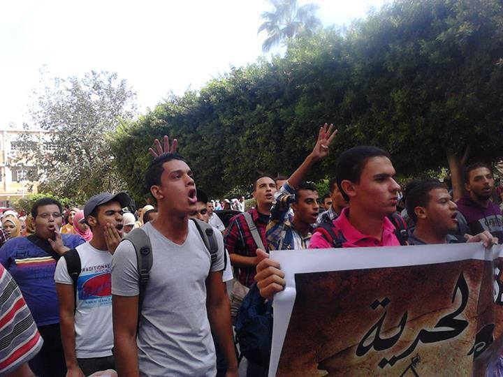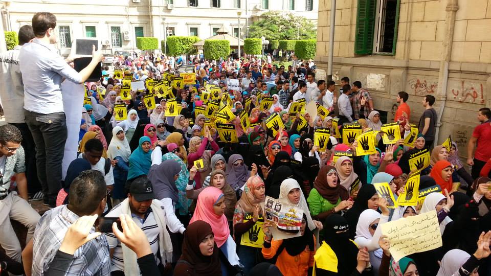 هتف الطالبات " يسقط يسقط حكم العسكر – احنا في دولة مش معسكر " يا سيسي يا غدار – تفرق ايه عن بشار "