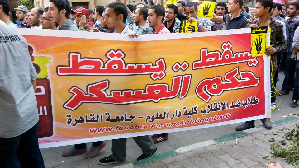 ونظم طلاب ضد الانقلاب وقفة أمام مبني القبة في جامعة القاهرة تنديد بالانقلاب العسكري واتقال الطلبة واحداث جامعة الزهر الأخيرة فيما نظم طلاب دار علوم مسيرة التحمت بوقفة الطلاب أمام مبني القبة الرئيسي وتحولت الي مسيرة وجابت انحاء الحرم الجامعي.