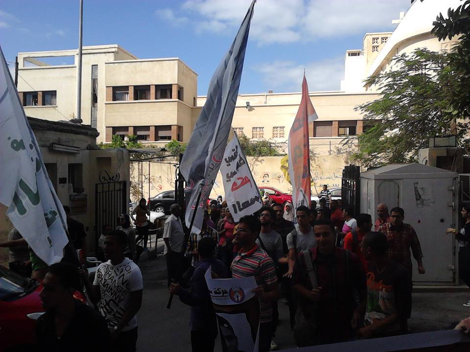 فيما نظم طلاب علوم الاسكندرية وقفة احتجاجية للتنديد بتجديد حبس زميلهم المعتقل كريم ياسر طاف الطلاب أرجاء الكلية كما خرجوا ليكملوا فعالياتهم أمام بوابة الكلية خارجها.و