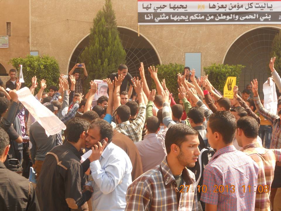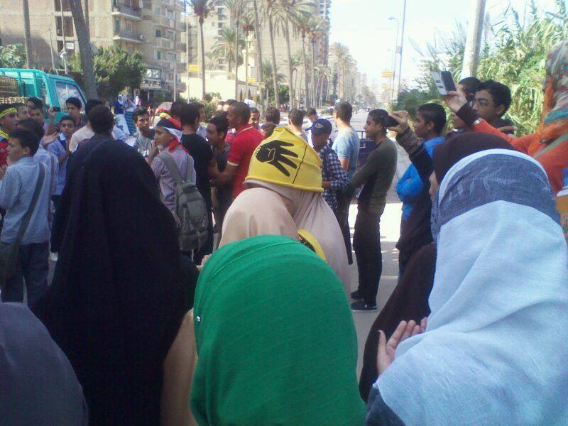 فيما كانت هناك وقفه لطلاب ثانوي ضد الانقلاب امام كليه درسات اسلاميه بنات التابعه لجامعه الازهر بالاسكندريه وقد خرج طالبات الجامعه وانضموا لطلاب الثانوي ونددوا بمجاز النقلاب وموقف شيخ الازهر منها.