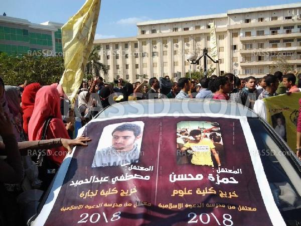 وبدأت فعالية الطلاب عقب صلاة الظهر من ميدان رابعة وجابت أرجاء الجامعة، رافعين بانرات تطالب بالمجد للشهداء، والحرية للمعتقلين، ولرابعة الصمود .