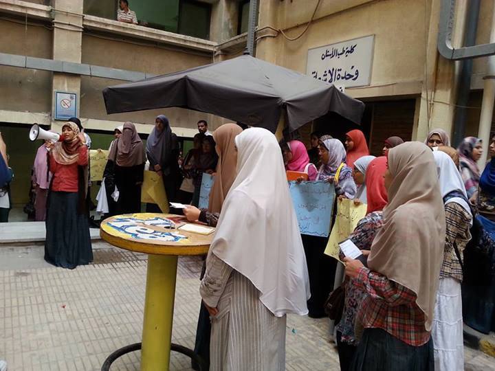 قام طلاب وطالبات كلية طب أسنان  جامعة الاسكندرية  بوقفة احتجاجية للتنديد بإعتقال و حبس الطالبات .