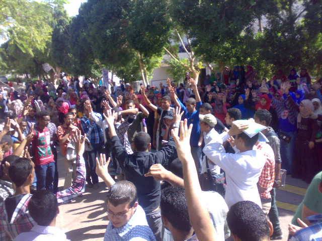 كما انطلقت مسيرة لطلاب ضد الانقلاب بجامعة اسوان منذ قليل رفضا للانقلاب العسكري والمحاكمة الغير شرعية للرئيس محمد مرسي.