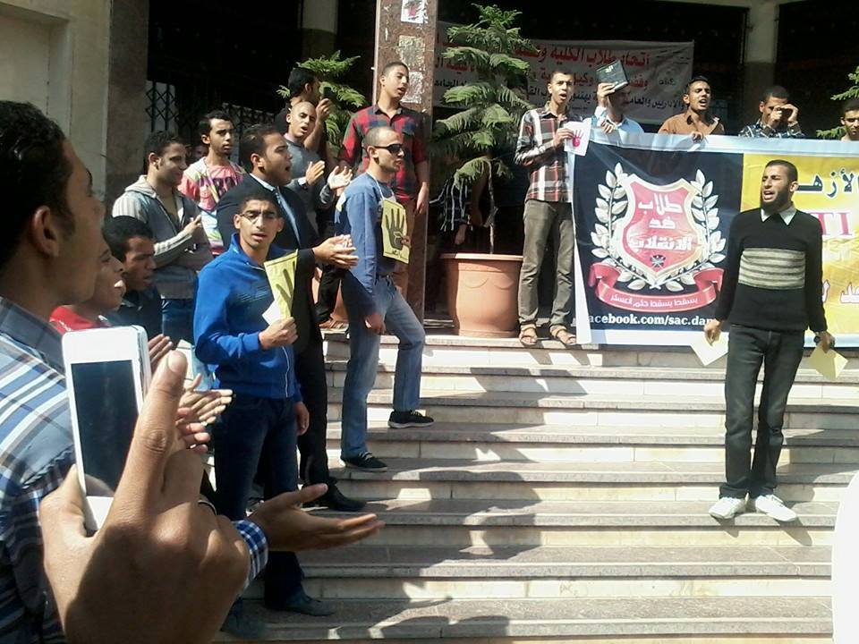 كما نظم طلاب ضد الانقلاب بكلية الشريعة والقانون جامعة الازهر بدمنهور وقفة احتجاجية فى بداية فعاليات اسبوع الحرية للشرفاء .