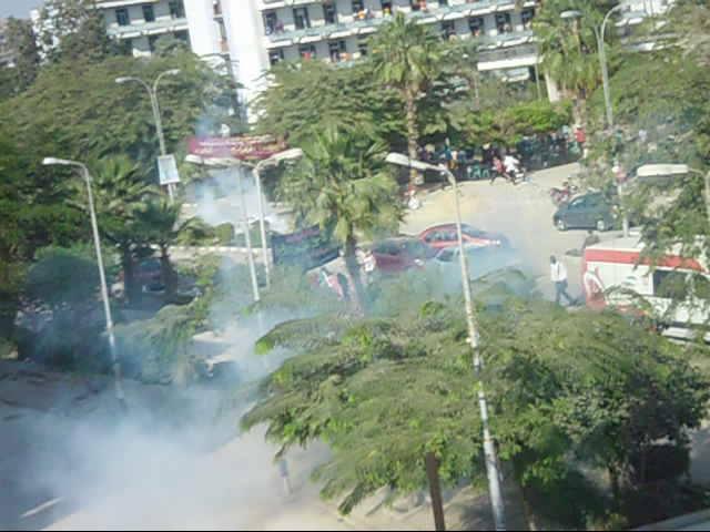 قامت قوات أمن الانقلاب باطلاق قنابل الغاز المسيل للدموع علي طلاب جامعة أسيوط من خارج الجامعة إلي داخلها لمنع خروج الطلاب من بوابة الجامعة للتظاهر.