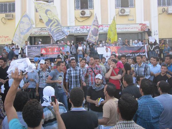 واجتمع الطلاب داخل الحرم الجامعى، أماممبنى الإداره الآن للتنديد بالحكم