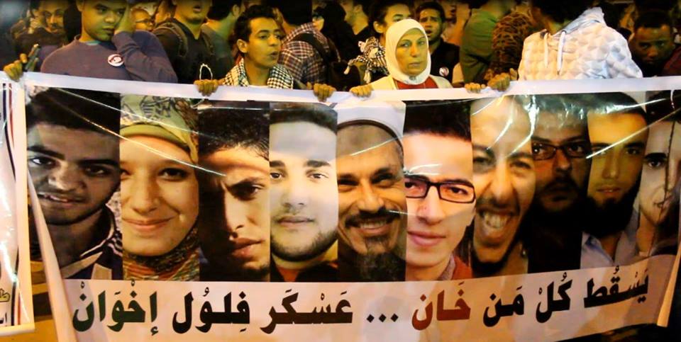 و حمل المتظاهرون علم الشهيد "جيكا" ولافتات أخرى عليها صورعدد من الشهداء، مكتوب علي بعضها "يسقط كل من خان ..عسكر..فلول ..اخوان " , ولافتة أخرى مكتوب عليها "لن ترك حق الشهيد..شارع عيون الحرية " .