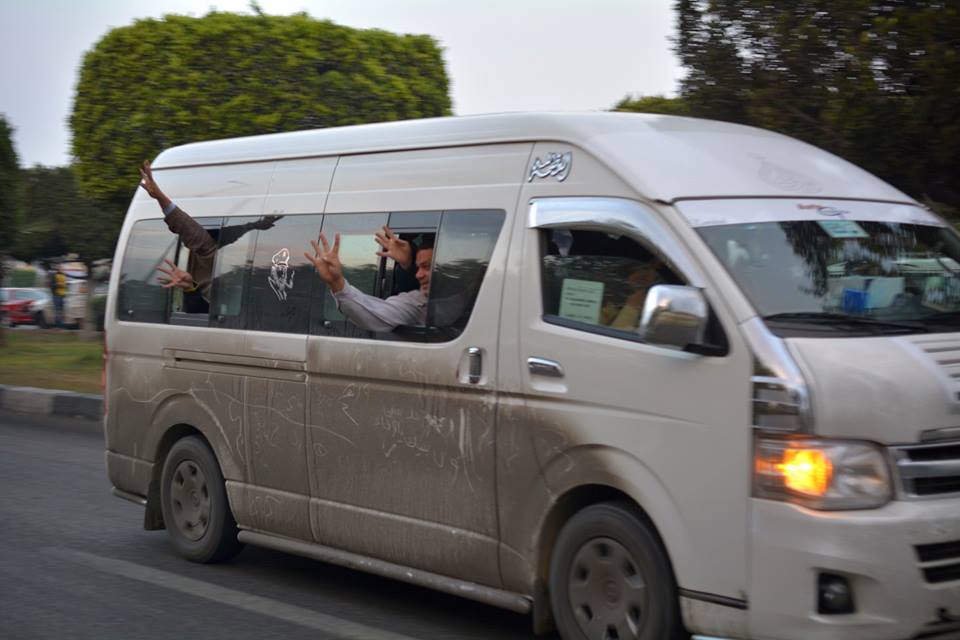كما رفع المشاركين بالسلسلة شعار رابعة، ولاقت السلسلة البشرية تأييداً من الأهالي وسيارات المارة وعمال المصانع، الذين تفاعلوا مع المحتجين برفع اشارة رابعة .