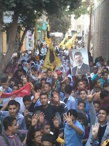 وفي ذات السياق، انطلقت مسيرة من أمام المدرسة الثانوية عقب انتهاء اليوم الدراسى, وجابت أنحاء وشوارع المدينة، وحمل المشاركون فيعا اللآفتات الرافضة لحكم العسكر، وصورا للمعتقلين والشهداء, وملوحين للمارة بإشارة رابعة.