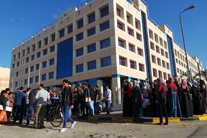نظم عدد من طلاب جامعة 6أكتوبر وقفة صباحية لطلاب امام الباب الرئيسي للجامعة تنديدا باحداث الازهر أمس.