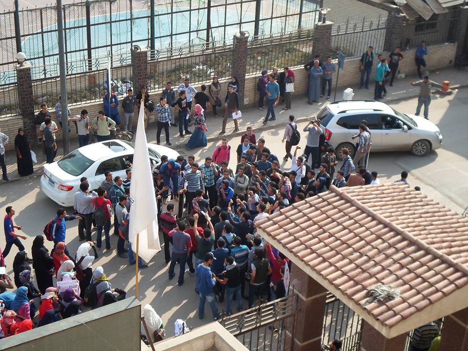 وفي سياق متصل، انطلقت مظاهرات بالمدينة الجامعية بالمنصورة اليوم للتنديد بمجزرة الأزهر.