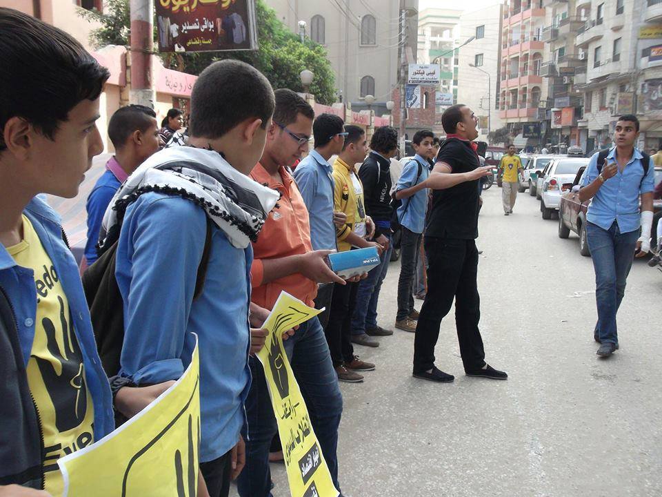 و حمل الطلاب اللافتات الرافضة لحكم العسكر، مرددين هتافات منها " يالي بتسأل احنا مين.. احنا اخوات" " شيل العمه شيل..يا طيب يا عميل " " طالب نايم في المدينة … قاموا قتلوه بالسكينة ".