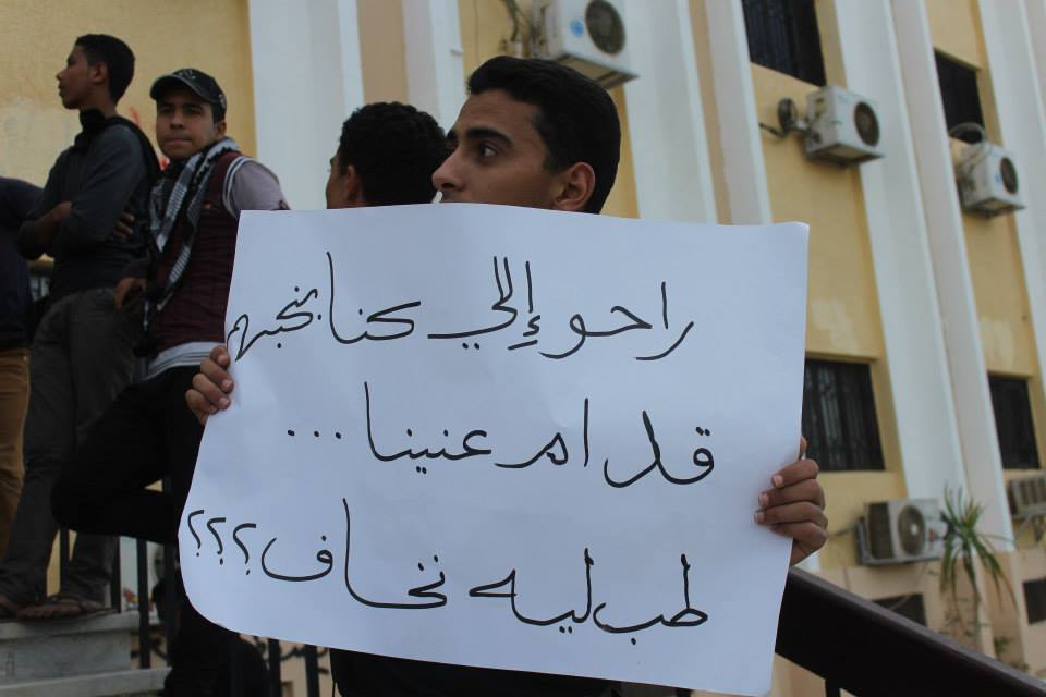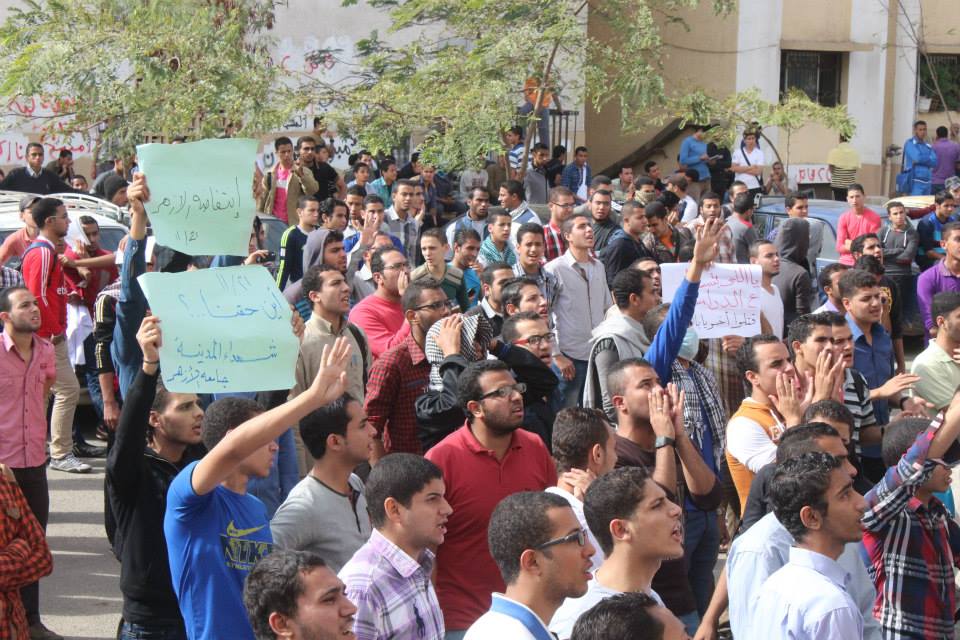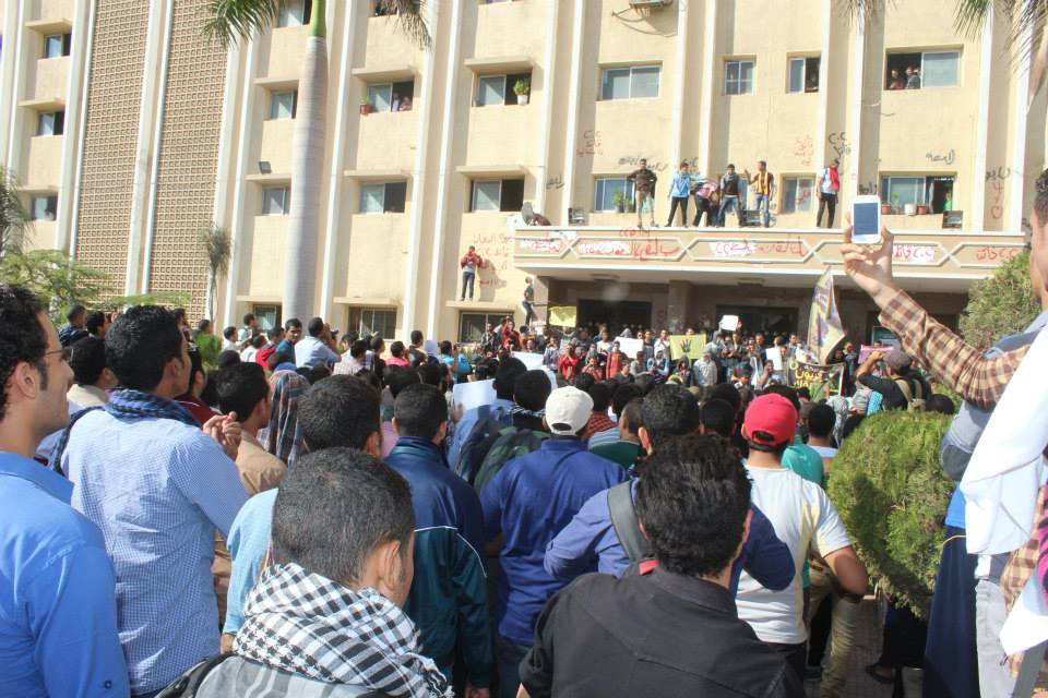 و طافت المسيرة أرجاء الجامعة وتوقفت عند مبنى كلية طب ومبنى الادارة والهندسة الميكانيكية , مرددين هتافات مناهضة لشيخ الازهر ورئيس الجامعه و الفريق أول عبد الفتاح السيسي , منها "احنا الازهر ودى كلمتنا .. بابا الازهر تحت جزمتنا" يا اوسخ اسم ف الوجود .. داخلية.. يا اوسخ من اليهود .. داخلية.. هتعيشوا حمير وتموتوا حمير " ," اوعى تصدق تليفزيوننا .. دوول قتلونا وصفوا عيوننا"