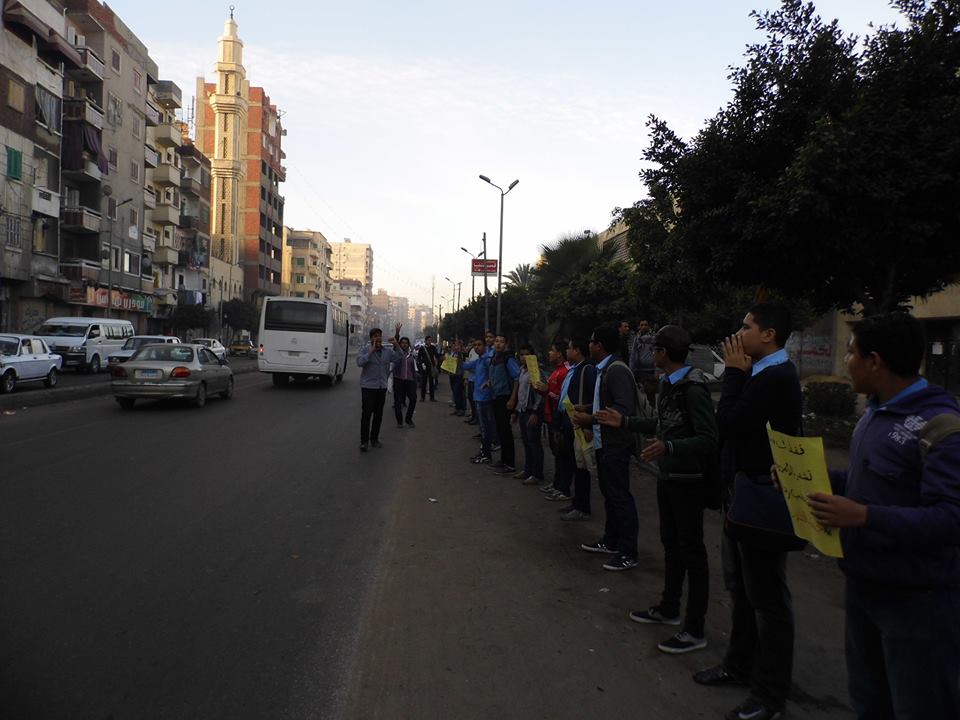 وقام الطلاب بتنظيم مسيرة من محطة الطويل وحتى المعهد الازهرى بالمنطقة ثم اختتموا فاعليتهم وتجمعوا مرة اخرى امام مستشفى الشاملة بالمنطقة وقاموا بعمل وقفة مرددين هتافات " احلق شنبك والبس جيبة البنات ف التخشيبة ، يسقط حكم العسكر ، ياللى بتسأل إيه القصة قتلوا اخويا وحرقوا الجثة ".