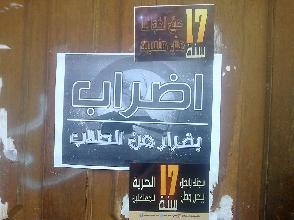 أضرب طلاب جامعة الأزهر بالقاهرة عن الدراسة في كلية الطب واللغات والتربية إعتراضاً علي إعتقال زملائهم في الأحداث الأخيرة.