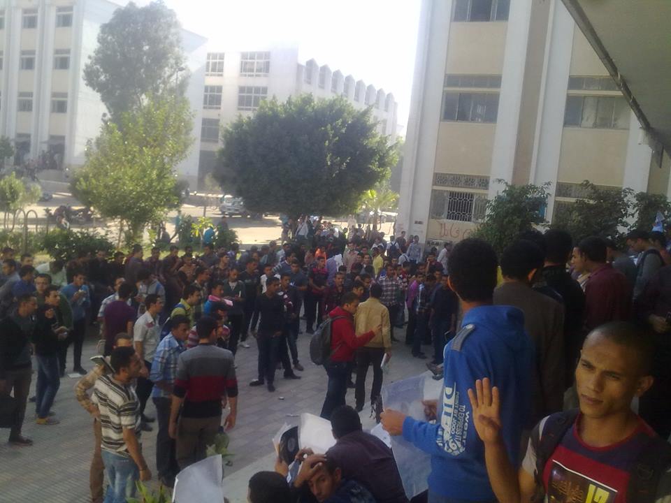 فيما طافت مسيرات حرم جامعة الازهر وتندد بالقمع الامني للحريات وطالبت بالافراج الفوري للمعتقلين وسط استمرار توقف الدراسة في كلية تجارة وتربية وطب وهندسة وبعض الكليات الاخري وتفاعل طلابي كبير.
