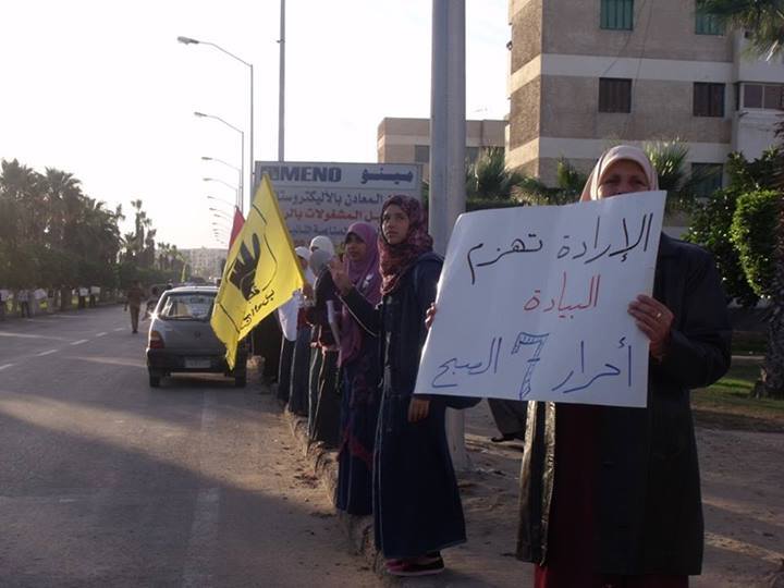 احتشد المئات من أهالي برج العرب، صباح اليوم السبت في محافظة الإسكندرية، في سلسلة بشريه رافضة للانقلاب ، استجابة لدعوة حركة "7 الصبح" والتحالف الوطني لدعم الشرعية ورفض الانقلاب.